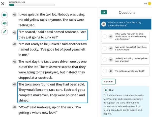 These contextual hints bridge the gap between students abandoning a challenging question and receiving too much assistance. For teachers, this means reduced intervention during independent practice while students learn to understand reading on their own.