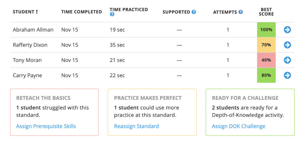 In addition to the added assignment management tools, teachers will now see students’ best scores and how many attempts they made on Math Targeted Practice assignments.